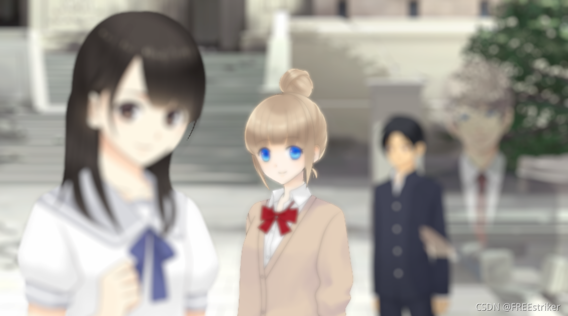 经过半个月的尝试,试验了很多方法,最终得到了如下的深度图和DOF效果图,我将先简单介绍我尝试过的几种方法,最后介绍最终实现的方法。