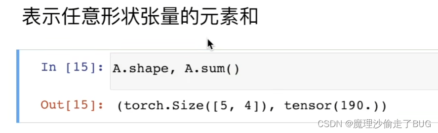 不论张量形状如何,其求所有元素和的结果永远是标量
