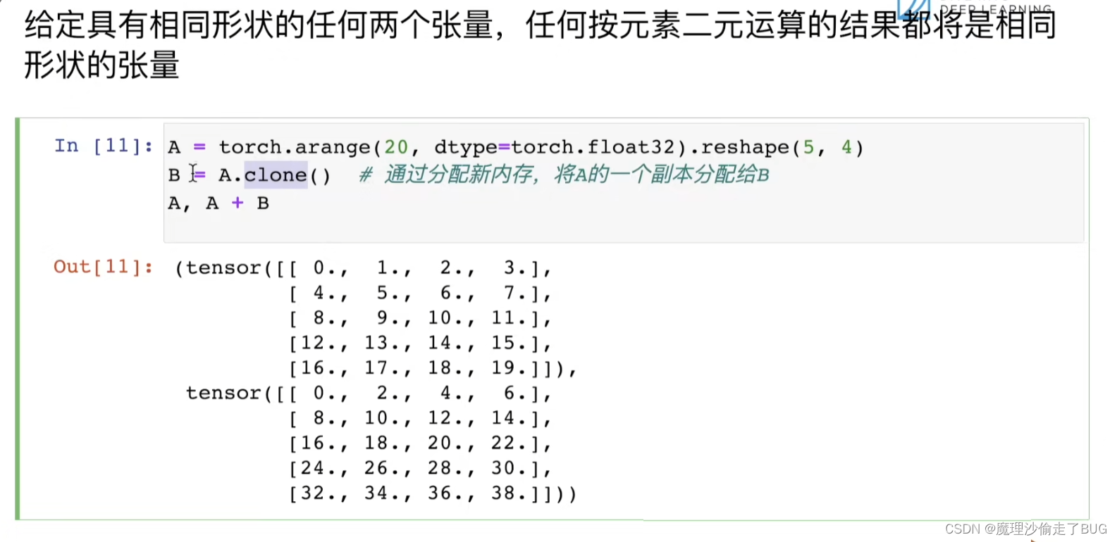 给定具有相同形状的任何两个张量,任何按元素二元运算的结果都将是相同形状的张量
