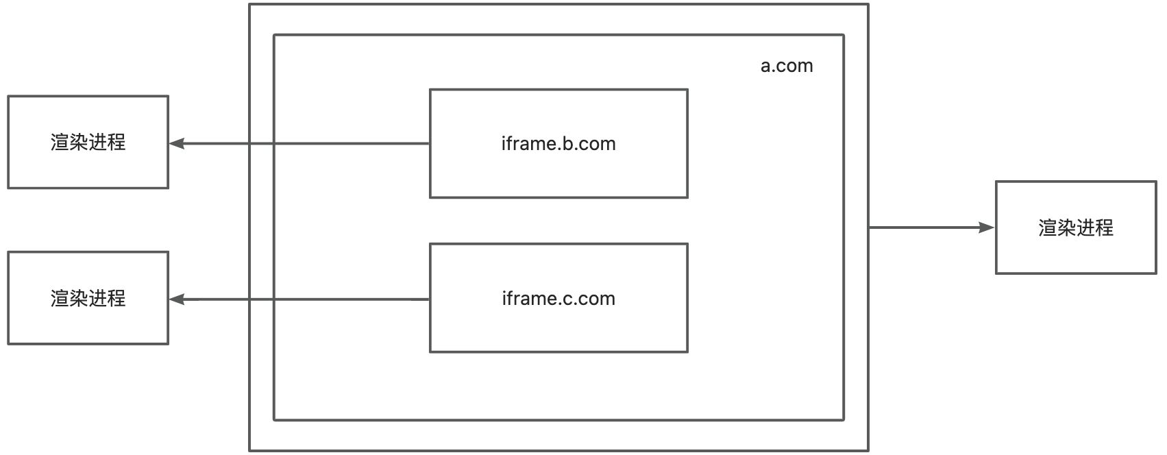 前面说我们每个标签页一个进程,但是这个标签页当中有可能通过iframe嵌入了另一个页面,这个时候如果公用一个进程的话可能就会带来风险。所以谷歌浏览器为跨站点的iframe页面也开启了一个单独的渲染进程。要考虑浏览器同源策略的影响,一个站点无法在未经允许的情况下访问其它站点的数据,进程隔离是分割站点的最有效的方式