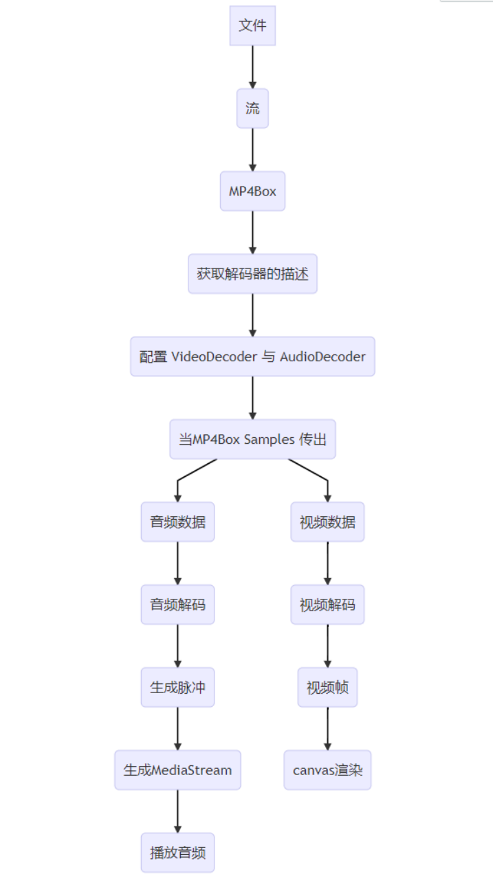 一个MP4视频文件大致由以上部分组成。这里我们使用的是 MP4Box.js 进行解封装。