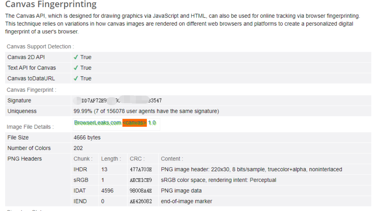 它通过记录用户浏览器的一些基本信息,包括操作系统、浏览器类型、浏览器版本、屏幕分辨率、字体、颜色深度、插件、时间戳等,通过这些信息,可以唯一标识用户身份。