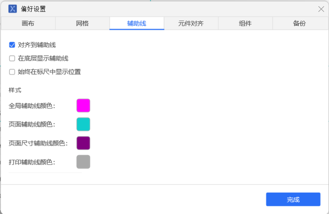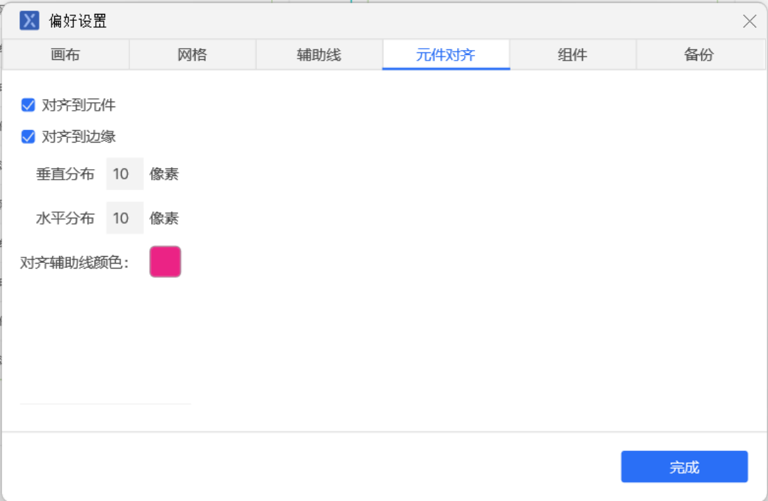 这样在拖拽元件时将会展示出对齐辅助线与元件之间的间距数字,帮助元件快速对齐。