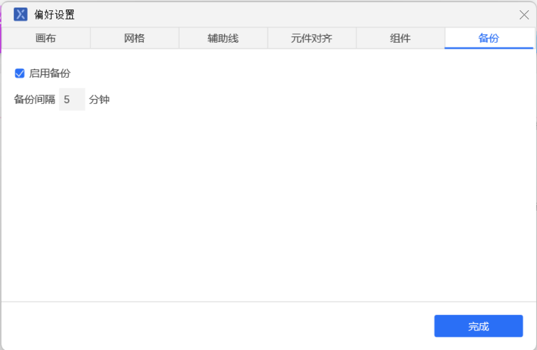 也可以点击「文件 」,选择「自动备份设置」,勾选启用备份,备份间隔 5 分钟