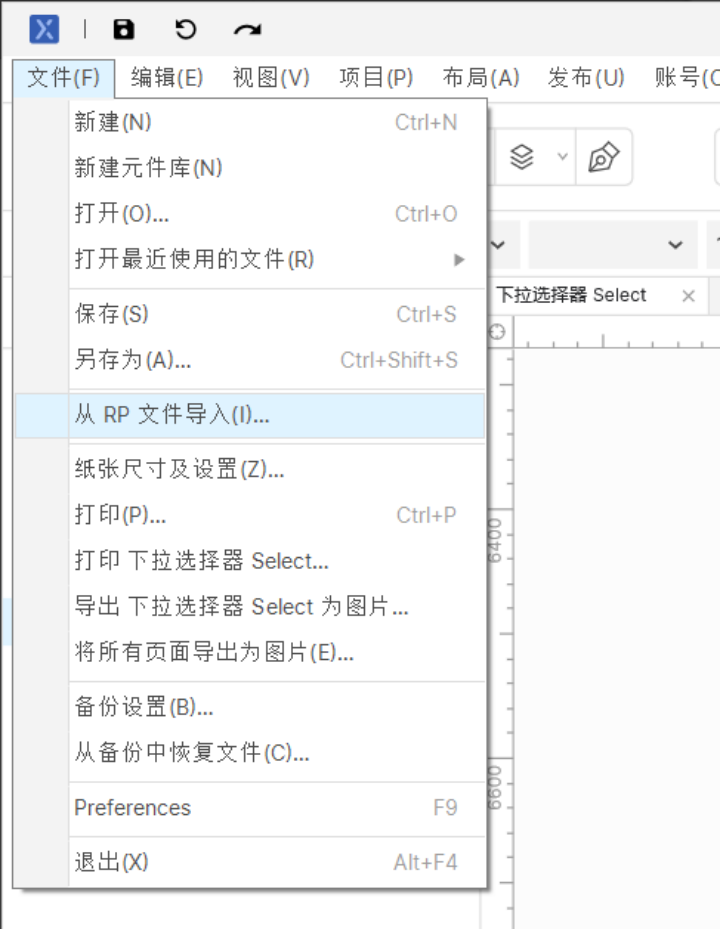 点击「文件→从 RP 文件导入→选择文件→导入」