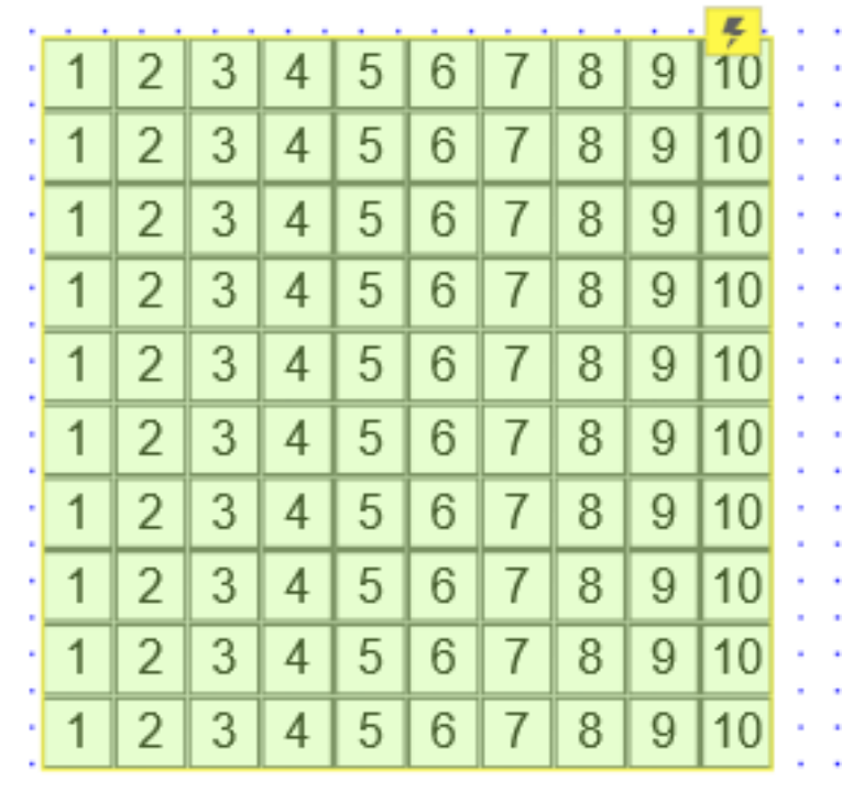 一个用来保存数值,初始数据共有100个数值,分别是 1~10 重复10遍,这样就形成了一个 10*10 的表格