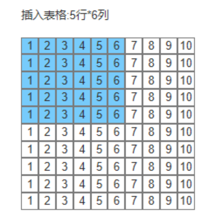 在办公软件或富文本编辑器中插入表格的时候我们经常可以通过在表格上移动鼠标,可以选取想要插入的表格行、列数。
