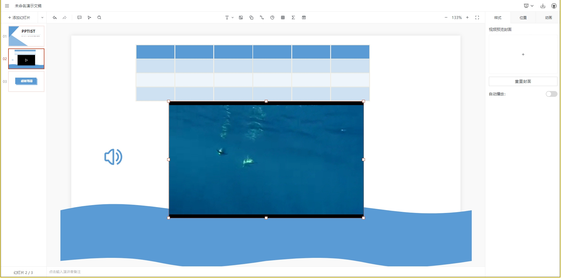 还原了大部分 Office PowerPoint 常用功能,支持 文字、图片、形状、线条、图表、表格、视频、音频、公式 几种最常用的元素类型。