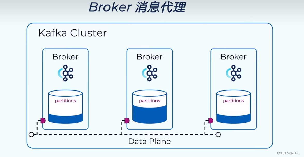 Kafka集群是由多个broker组成的,broker负责消息的读写请求,并将数据写入到磁盘中,通常在每个服务器上都启动一个broker实例,通常情况一台服务器就是一个broker,