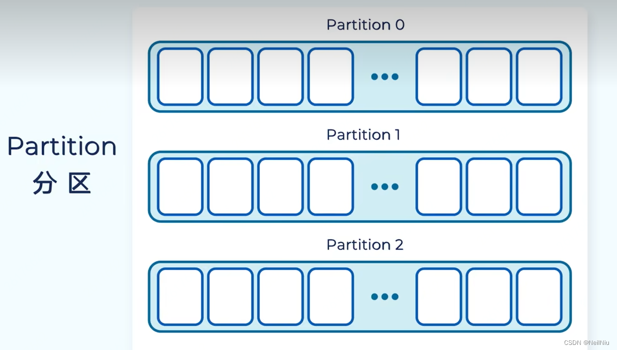 Topic主题,类似数据库中的表,将相同类型的消息存储到同一个主题中,数据库中的表是结构化的,Topic的属于半结构化的,主题可以包含多个分区,KafKa是一个分布式消息系统,分区是kafka的分布式的基础,分区使kafka具备了拓展性,如果数据存储在单服务器上,可能会遇到存储的限制,从而导致性能的瓶颈。