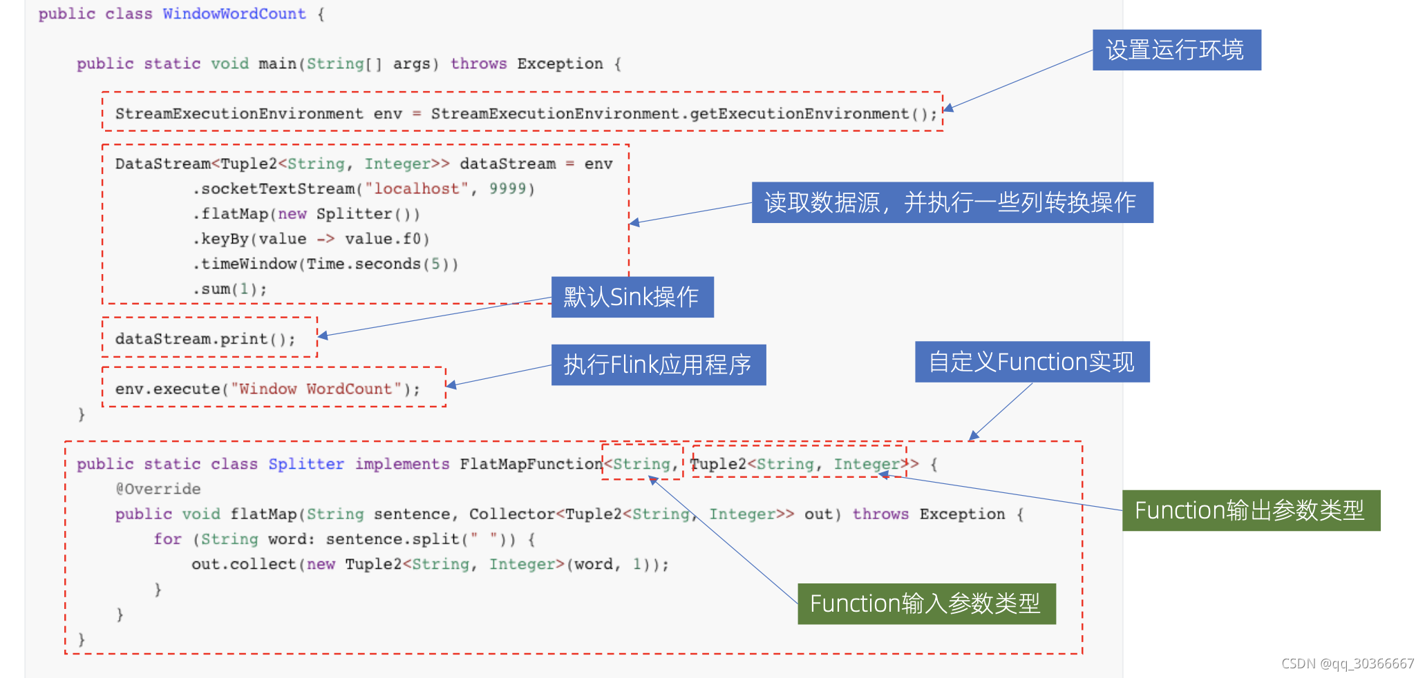 执行这个要包含main方法,和MR类似;实际上,数据处理也和离线差不多,定义数据输入,数据处理,定义数据输出。
