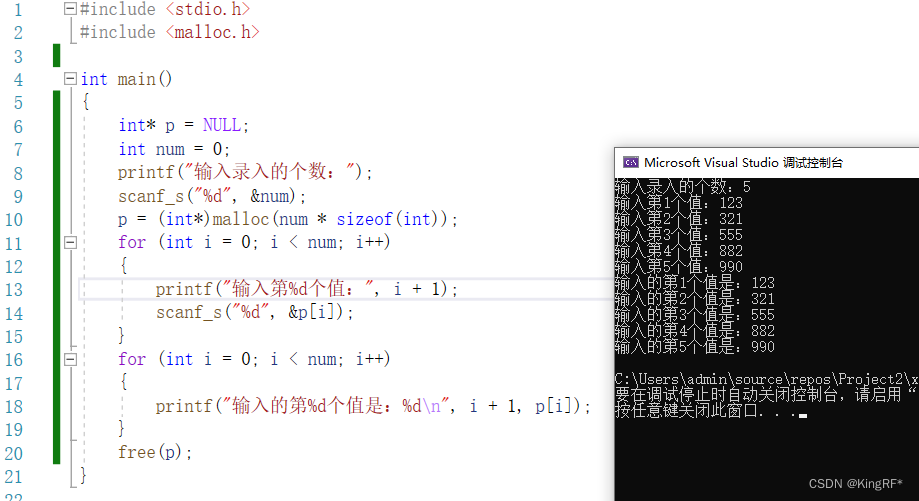 printf("输入的第%d个值是:%d\n", i + 1, p[i]);