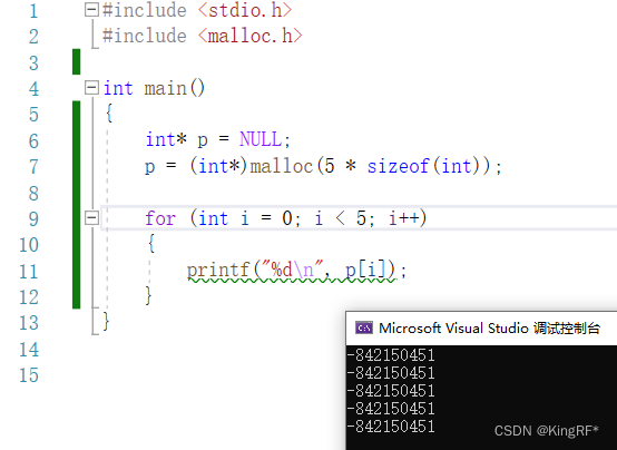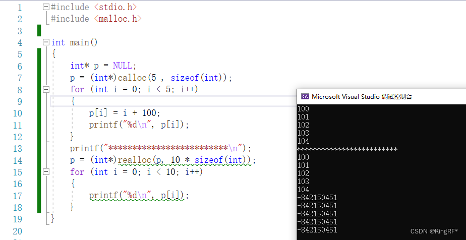 calloc(5 , sizeof(int)),申请5个int大小的内存空间,申请后初始化为0;