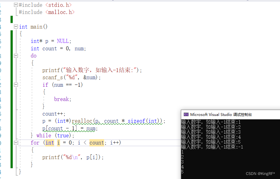 根据输入动态的分配内存空间,输入一个值内存就增大一次;