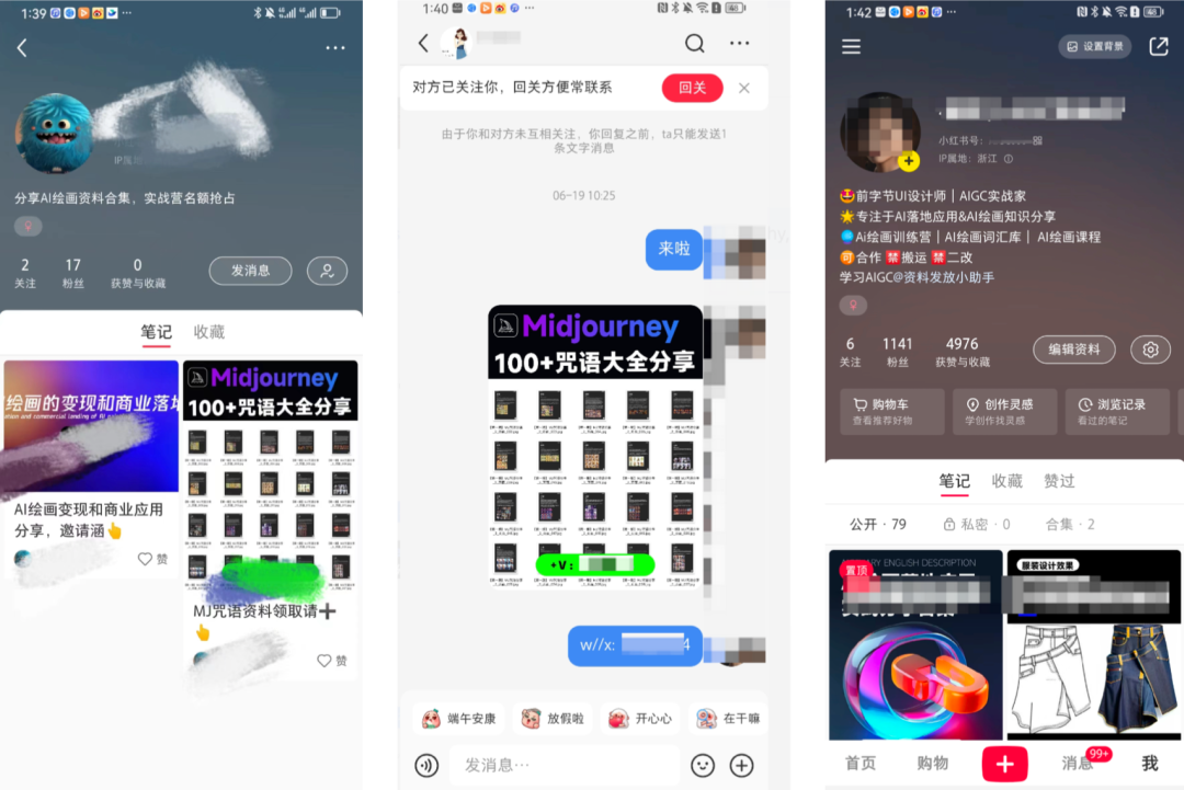 笔记引导加入小红书粉丝群(粉丝群内再引流),或者引导查看收藏(收藏小号的笔记中插有联系方式);