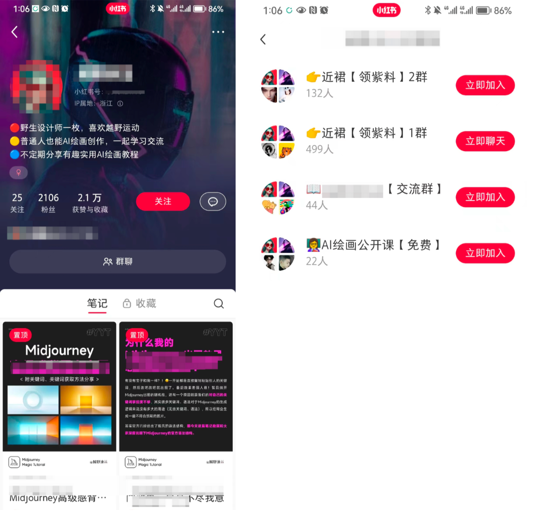小红书的粉丝群应该是相对比较安全的引流区,用户进入粉丝群后,群主在群内发布的信息上,有很大的操作空间。每个小红书号可以创建5个上限为500人的群聊。那么用户从哪里加入小红书群聊呢?【小红书群聊入口】(1)账号主页展示;