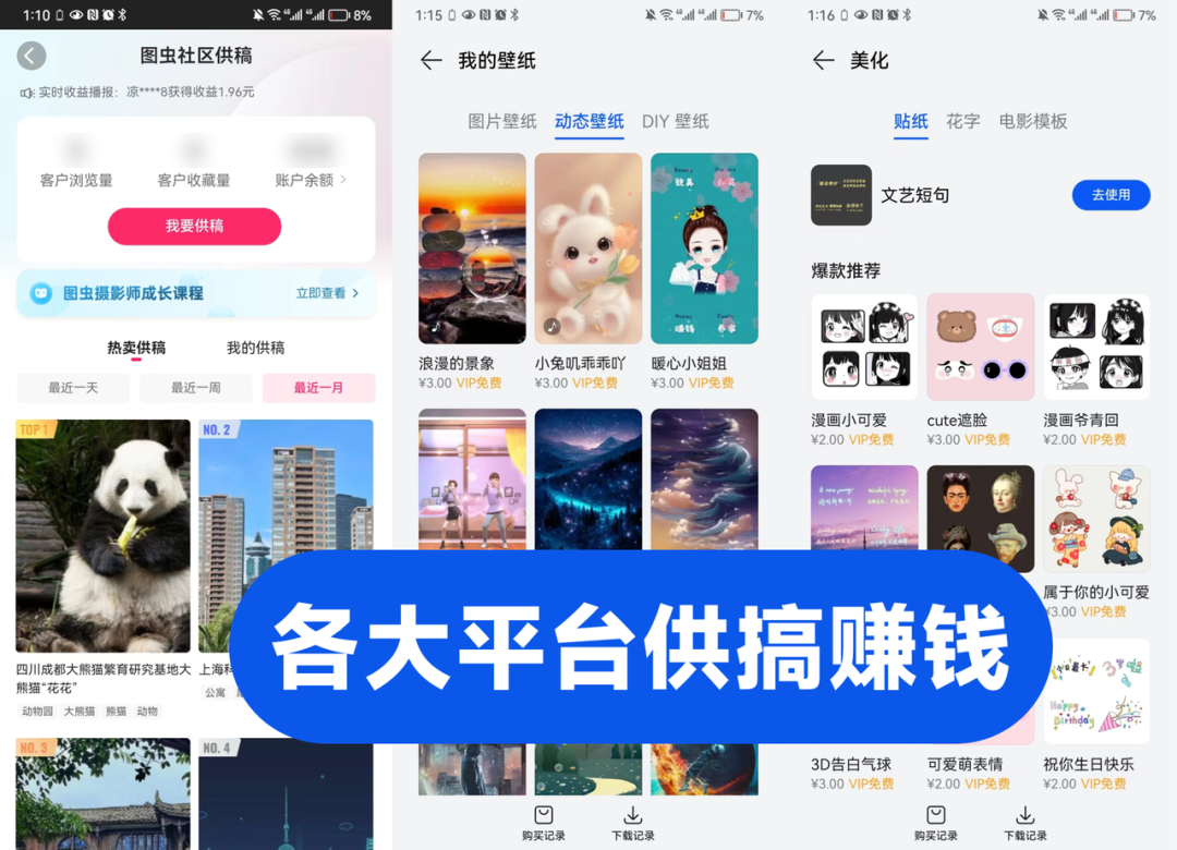 素材网站供稿:生成AI素材上传网站供稿进行变现。