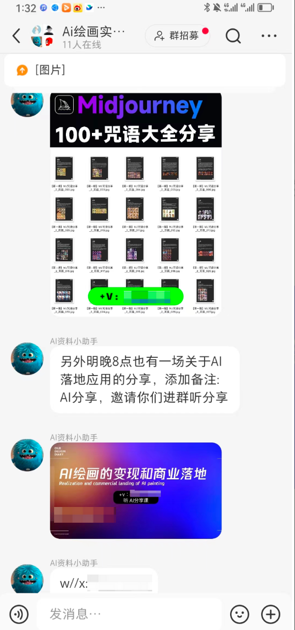 笔记首图中放微信群二维码,注意二维码打上马赛克,露出群名称和头像,另配上群聊天分享资料的截图,让用户知道社群内会分享什么样的资料,有需求的用户就会主动询问添加;
