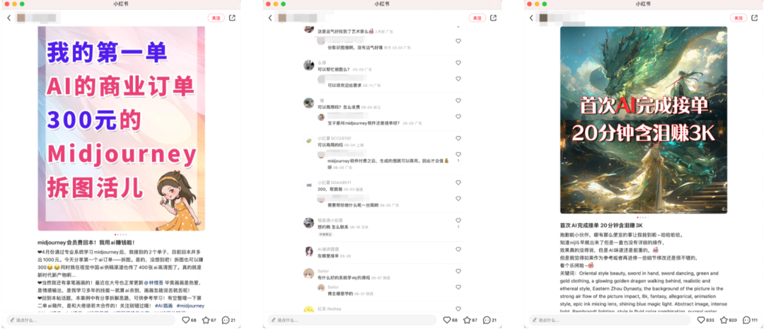 这个是通过做自媒体账号给AI绘画工具进行拉新,这种账号一般通常以售图、接广告、导流私域工具拉新进行变现。
