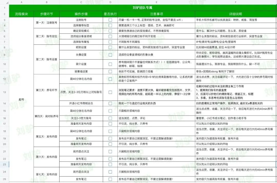 将步骤流程化的目的是为了你每次发笔记更快更准确,也方便你用于团队管理,并且后期数据出来后,方便结合数据进行复盘,一个小白拿到你给的SOP也能去跟着步骤操作学会。