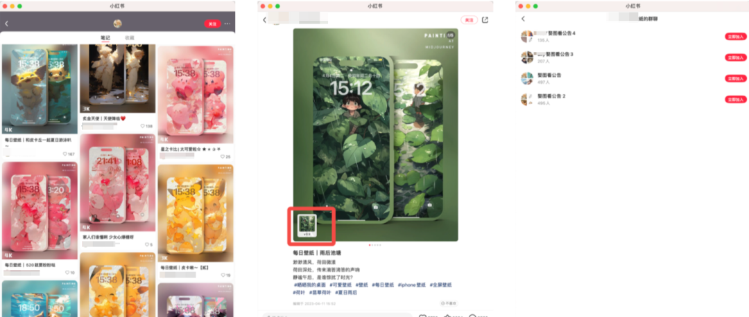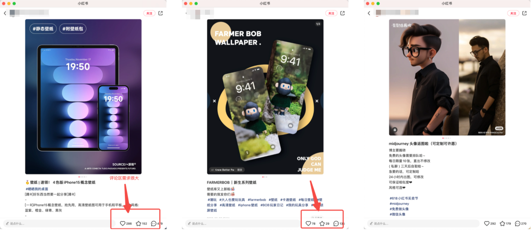 这类人群是纯粹是因为热点和信息差刚打开,被内容/功能吸引想看看,想了解一下看看能解决什么问题,处于好奇阶段没有明确的需求感,所以你先得让他们进来围观进而去激发他们想学习的欲望,你只需要换位思考一下,假如你是一个小白你会被什么吸引进去。而针对这类的对壁纸/插画/资讯等感兴趣的人群,如何去制作钩子呢?
