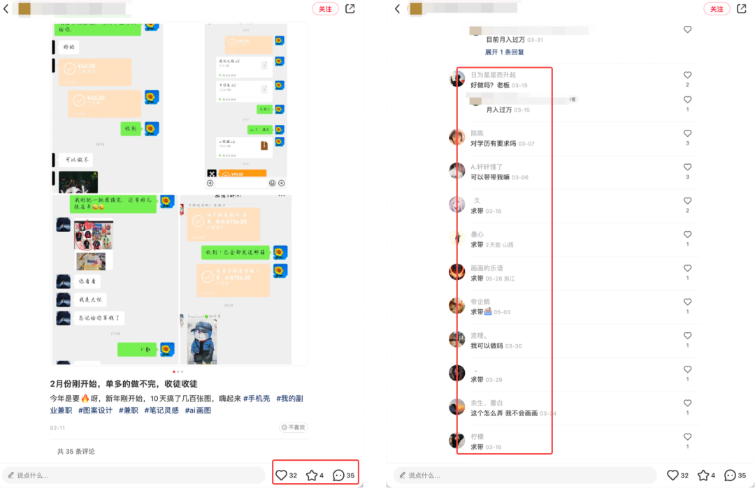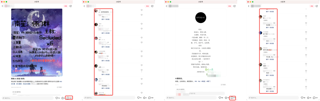 b、他人评论区截流与自己领域相关的笔记评论区,设置诱饵,采用恰当的话术进行截流。