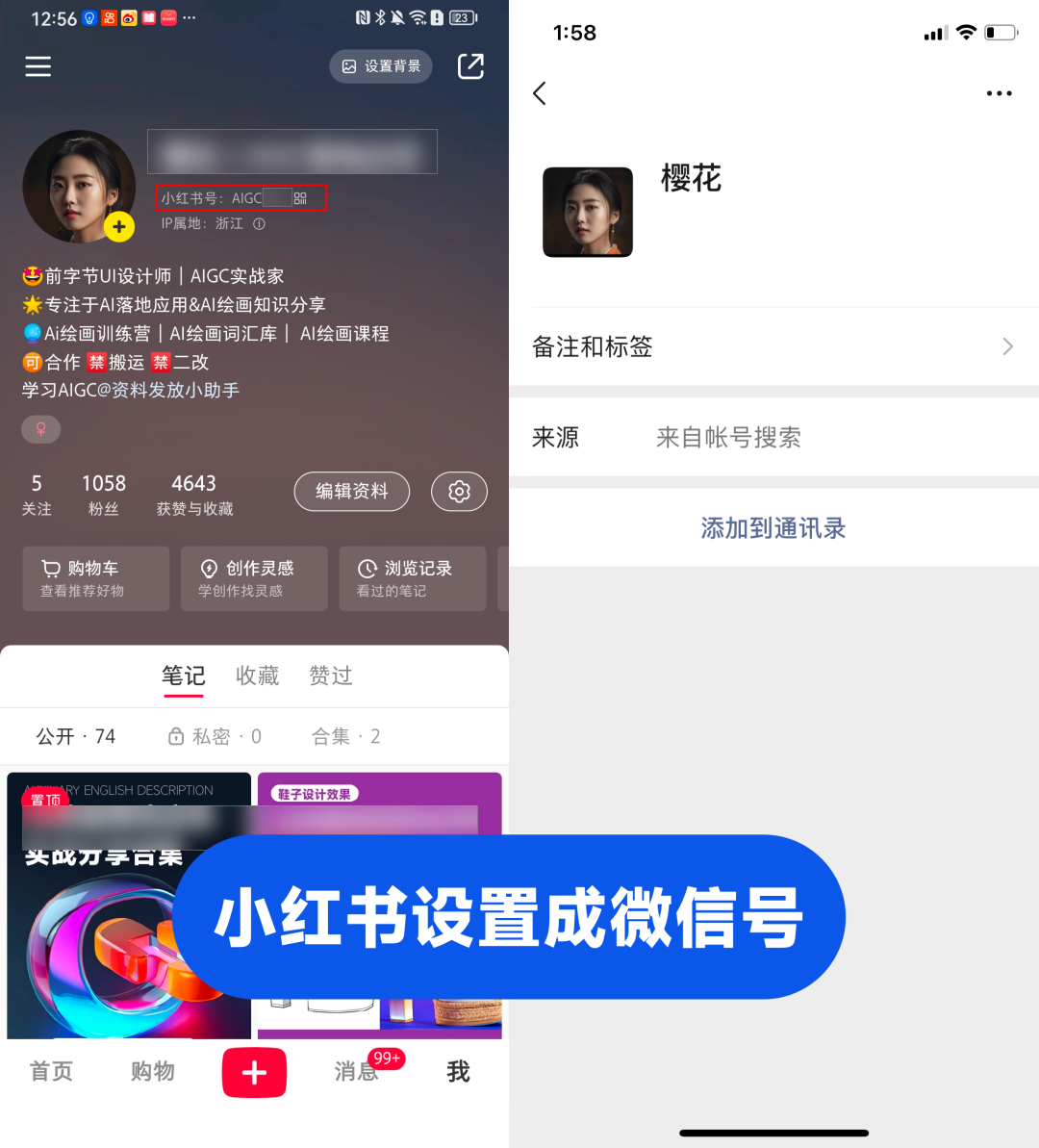 小红书头像放置微信二维码,或其他二维码;