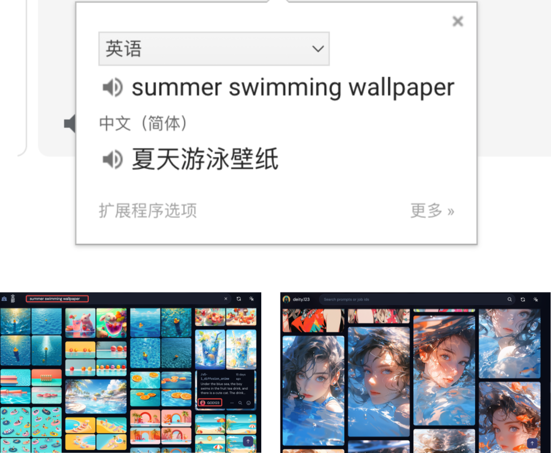 根据他们的风格/标题正文,翻译成英文去mj官方图库中进行搜索以及mj公共频道搜索栏中进行搜索,他们做的图一般在图库/公共频道中是会有相同的/类似的,在通过他们的作品去他们主页看看,具体的看核心关键词是否匹配,如果不行继续切换一下关键词。