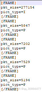 通过ffprobe -show_frames 命令可以查看视频文件中的帧信息,输出的帧信息使用FRAME标签扩起来: