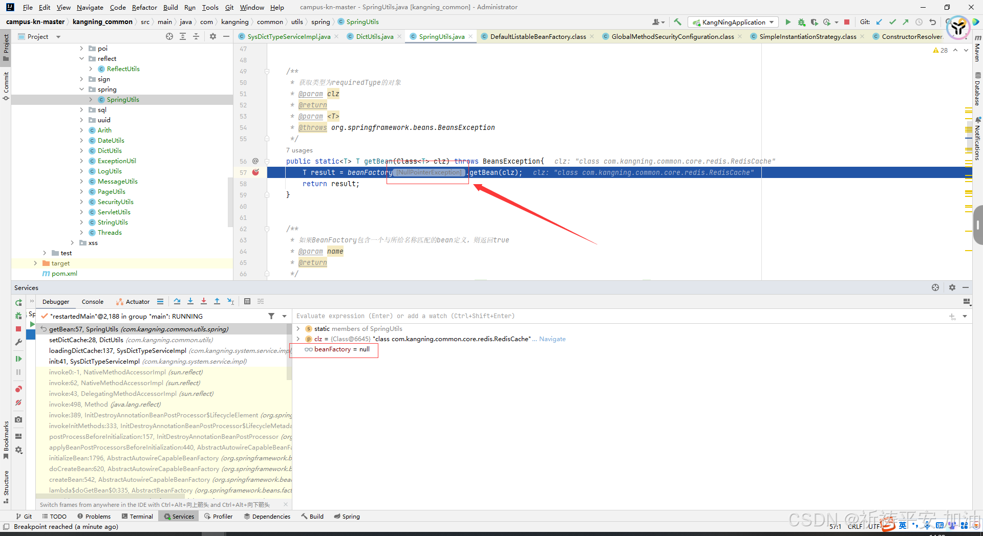 at com.kangning.common.utils.spring.SpringUtils.getBean(SpringUtils.java:57)