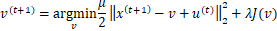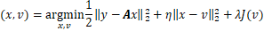 通过引入中间变量,将单个优化问题分解成两个子问题,从而将数据项和先验项进行分离,进而写成下面的迭代形式,求解一遍x,然后求解一遍v:
