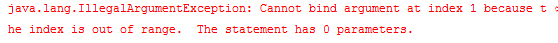 java.lang.IllegalArgumentException: Cannot bind argument at index 1 because the index is out of range.