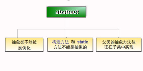 Java 抽象类(虚无缥缈) 1. 抽象类不能被实例化(初学者很容易犯的错),如果被实例化,就会报错,编译无法通过。只有抽象类的非抽象子类可以创建对象。2. 抽象类中不一定包含抽象方法,但是有抽象方法的类必定是抽象类。3. 抽象类中的抽象方法只是声明,不包含方法体,就是不给出方法的具体实现也就是方法的具体功能。4. 构造方法,类方法(用 static 修饰的方法)不能声明为抽象方法。5. 抽象类的子类必须给出抽象类中的抽象方法的具体实现,除非该子类也是抽象类。