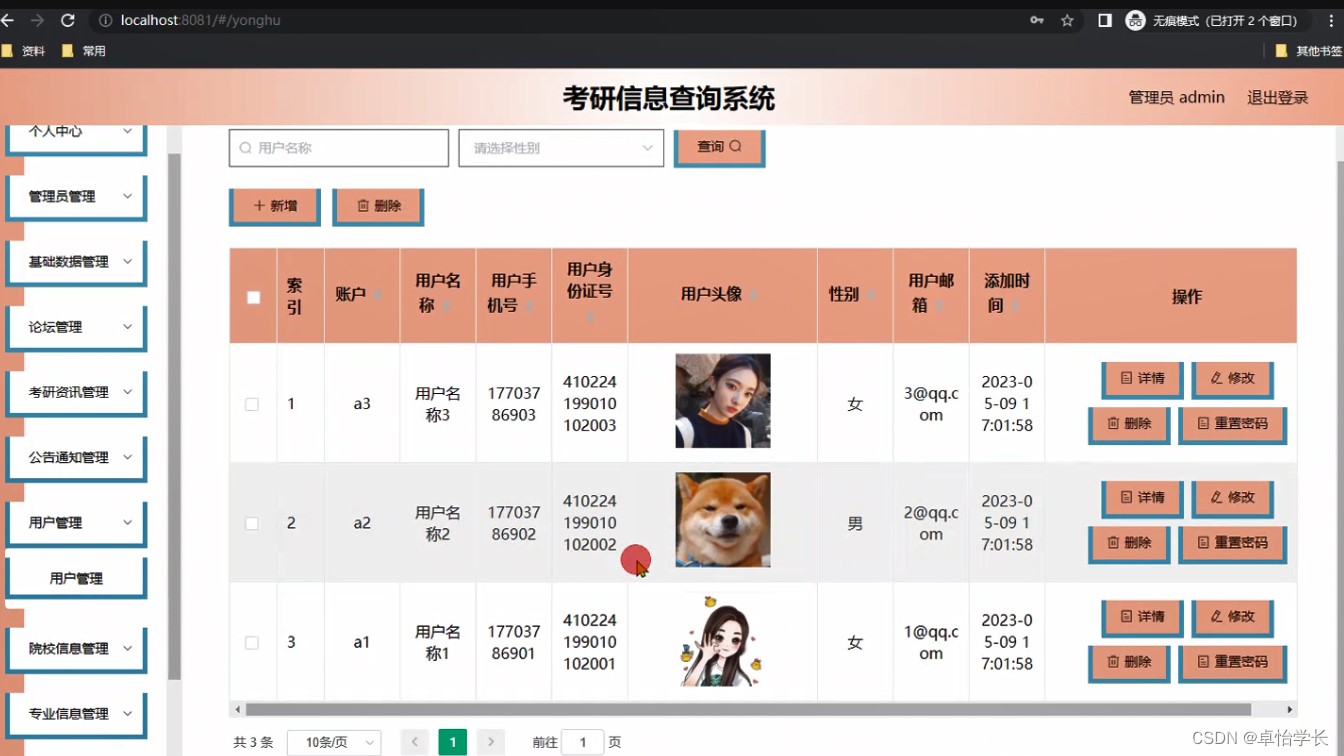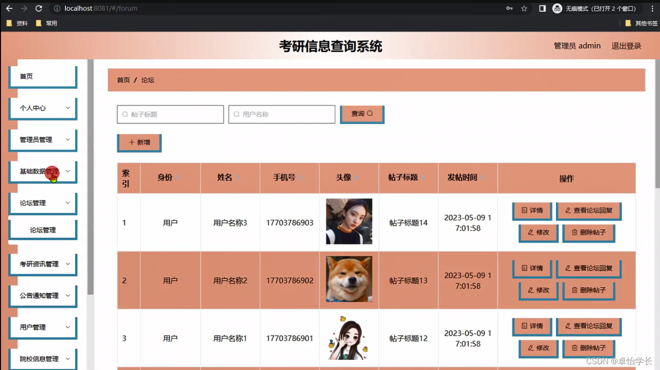 关键词:考研信息查询系统;SpringBoot框架,系统分析,数据库设计