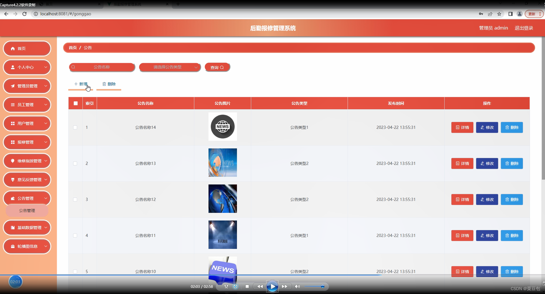 第5章:实现后勤报修管理系统管理系统的功能并进行功能界面展示。