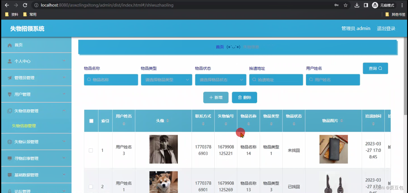 失物招领系统是一款运用软件开发技术设计实现的应用系统,在信息处理上可以达到快速的目的,不管是针对数据添加,数据维护和统计,以及数据查询等处理要求,失物招领系统都可以轻松应对。