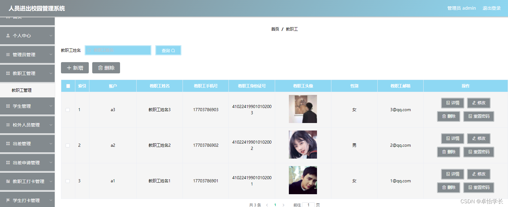 人员进出校园管理系统不仅可以提高人员进出校园相关信息的处理效率,规范人员进出校园管理操作流程,保证人员进出校园相关信息安全,是一款非常有用的程序。