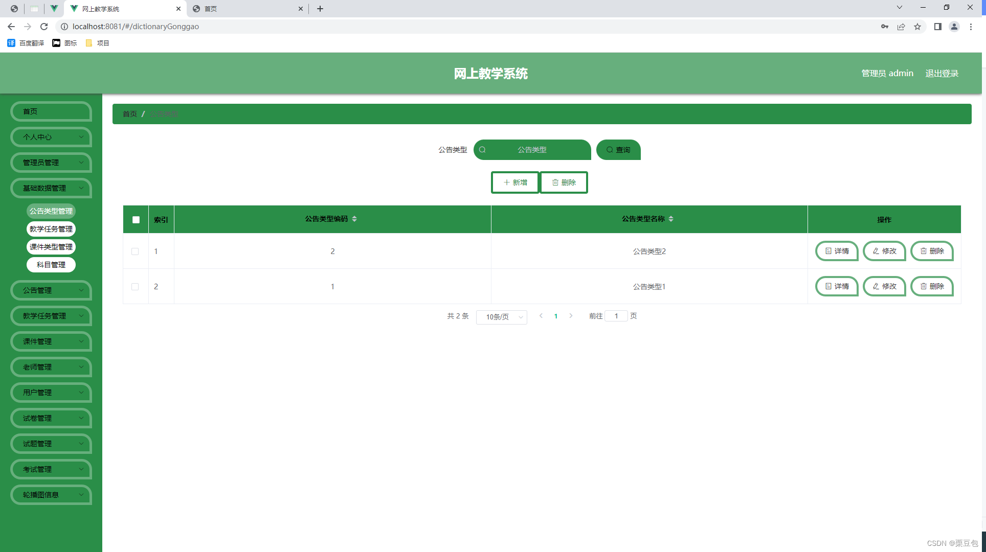 现代经济快节奏发展以及不断完善升级的信息化技术,让传统数据信息的管理升级为软件存储,归纳,集中处理数据信息的管理方式。本网上教学系统就是在这样的大环境下诞生,其可以帮助管理者在短时间内处理完毕庞大的数据信息,使用这种软件工具可以帮助管理人员提高事务处理效率,达到事半功倍的效果。此网上教学系统利用当下成熟完善的springboot框架,使用跨平台的可开发大型商业网站的Java语言,以及最受欢迎的RDBMS应用软件之一的Mysql数据库进行程序开发。实现了字典管理、试卷管理、试卷选题管理、试题表管理、考试记录表管理、答题详情表管理、错题表管理、公告管理、教学任务管理、教学任务收藏管理、教学任务留言管理、课件管理、课件收藏管理、课件留言管理、老师管理、用户管理、管理员管理等功能。网上教学系统的开发根据操作人员需要设计的界面简洁美观,在功能模块布局上跟同类型网站保持一致,程序在实现基本要求功能时,也为数据信息面临的安全问题提供了一些实用的解决方案。可以说该程序在帮助管理者高效率地处理工作事务的同时,也实现了数据信息的整体化,规范化与自动化。