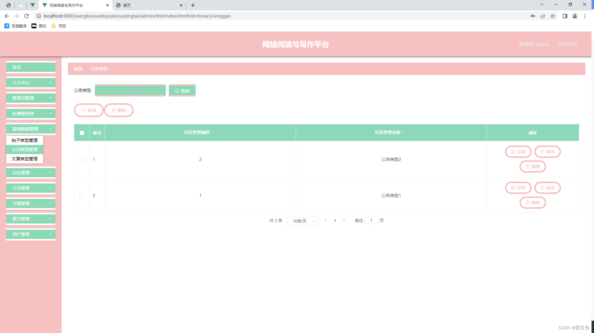 网络阅读与写作平台管理员可以管理用户的基本信息,可以管理公告信息,可以管理公告信息等。