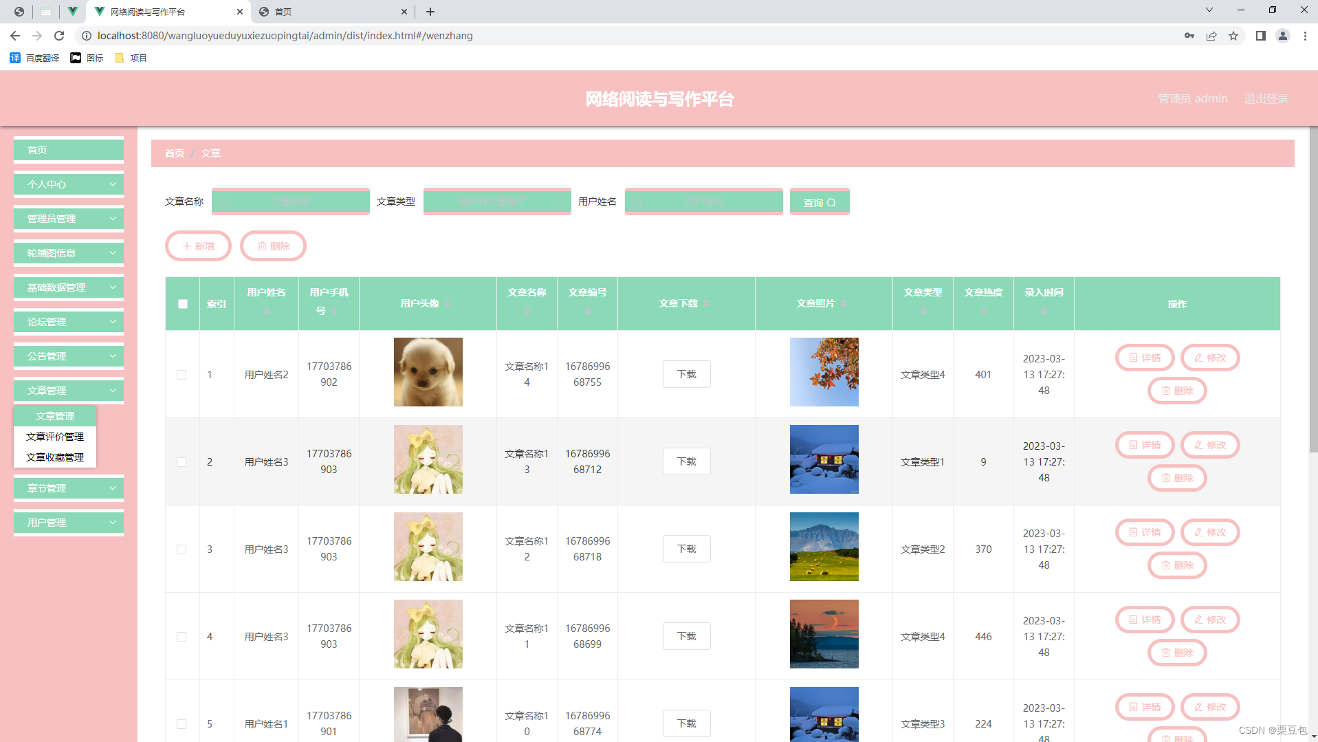 传统信息的管理大部分依赖于管理人员的手工登记与管理,然而,随着近些年信息技术的迅猛发展,让许多比较老套的信息管理模式进行了更新迭代,文章信息因为其管理内容繁杂,管理数量繁多导致手工进行处理不能满足广大用户的需求,因此就应运而生出相应的网络阅读与写作平台。