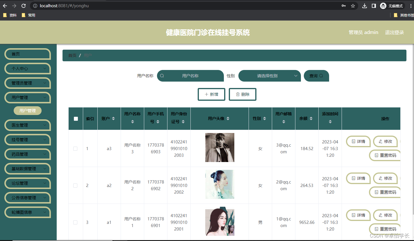 互联网发展至今,无论是其理论还是技术都已经成熟,而且它广泛参与在社会中的方方面面。它让信息都可以通过网络传播,搭配信息管理工具可以很好地为人们提供服务。针对信息管理混乱,出错率高,信息安全性差,劳动强度大,费时费力等问题,采用健康医院门诊在线挂号系统可以有效管理,使信息管理能够更加科学和规范。