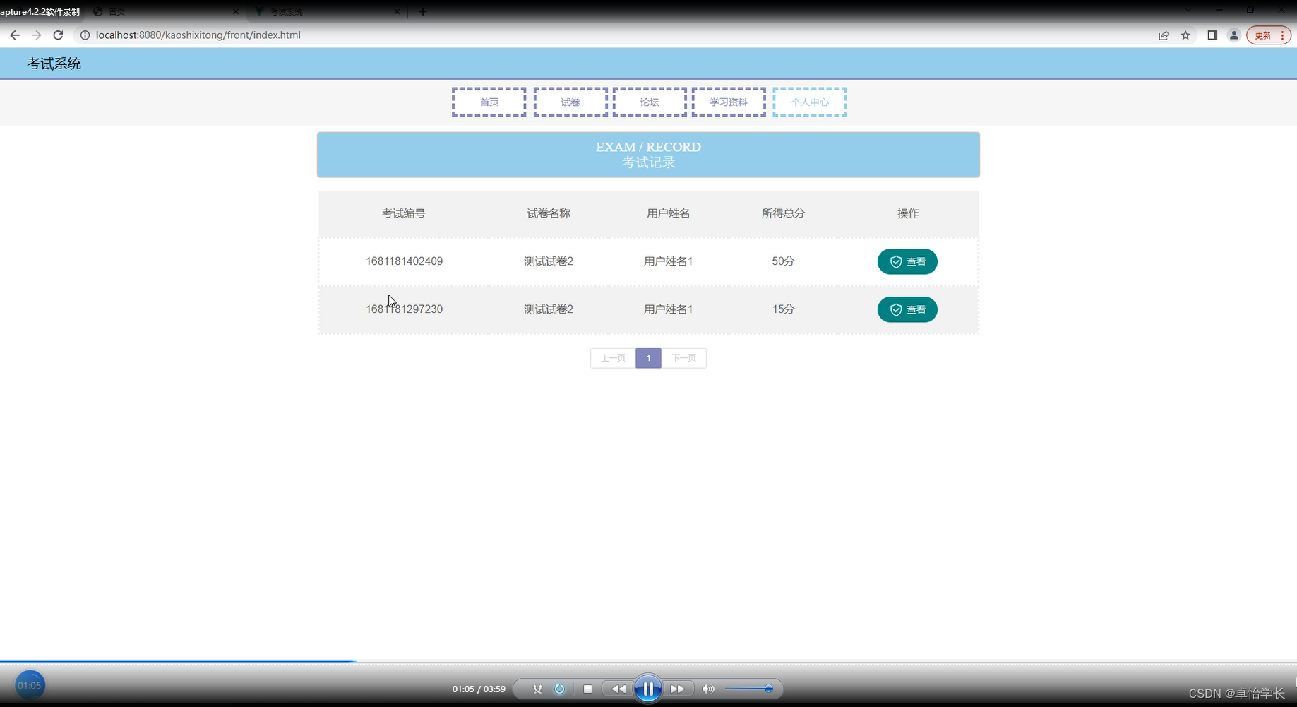 第5章:实现考试系统管理系统的功能并进行功能界面展示。