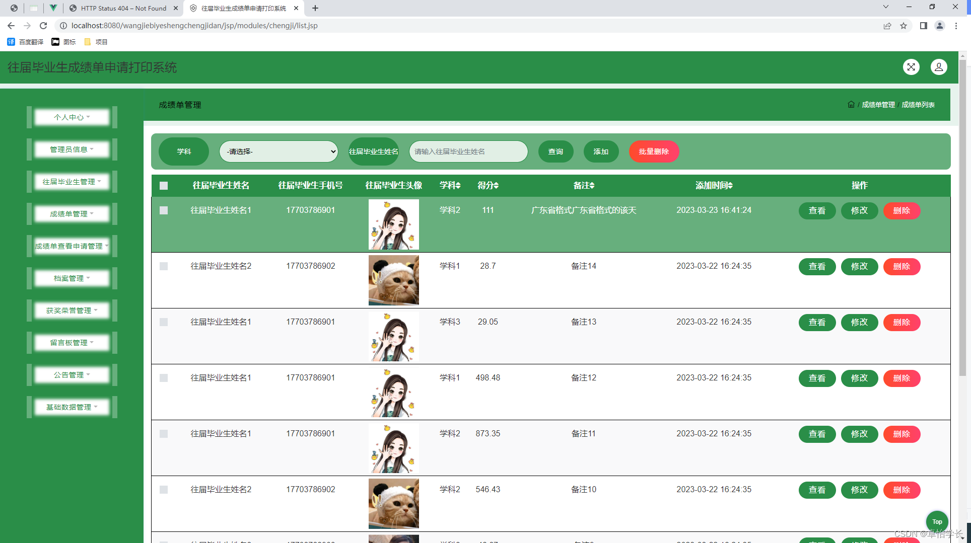 当前社会各行业领域竞争压力非常大,随着当前时代的信息化,科学化发展,让社会各行业领域都争相使用新的信息技术,对行业内的各种相关数据进行科学化,规范化管理。这样的大环境让那些止步不前,不接受信息改革带来的信息技术的企业随时面临被淘汰,被取代的风险。所以当今,各个行业领域,不管是传统的教育行业,餐饮行业,还是旅游行业,医疗行业等领域都将使用新的信息技术进行信息革命,改变传统的纸质化,需要人手工处理工作事务的办公环境。软件信息技术能够覆盖社会各行业领域是时代的发展要求,各种数据以及文件真正实现电子化是信息社会发展的不可逆转的必然趋势。本往届毕业生成绩单申请打印系统也是紧跟科学技术的发展,运用当今一流的软件技术实现软件系统的开发,让往届毕业生成绩单申请打印系统完全通过管理系统实现科学化,规范化,程序化管理。从而帮助信息管理者节省事务处理的时间,降低数据处理的错误率,对于基础数据的管理水平可以起到促进作用,也从一定程度上对随意的业务管理工作进行了避免,同时,往届毕业生成绩单申请打印系统的数据库里面存储的各种动态信息,也为上层管理人员作出重大决策提供了大量的事实依据。总之,往届毕业生成绩单申请打印系统是一款可以真正提升管理者的办公效率的软件系统。