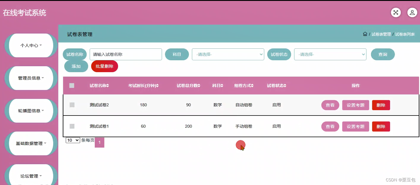 在线考试系统在Eclipse环境中,使用Java语言进行编码,使用Mysql创建数据表保存本系统产生的数据。系统可以提供信息显示和相应服务,其管理员增删改查试卷信息和试卷信息资料,审核试卷信息预订订单,查看订单评价和评分,通过留言功能回复用户提问。