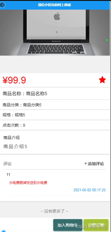 本基于微信小程序的网上商城管理员功能有个人中心,用户管理,商品信息管理,商品分类管理,用户评价管理,留言板管理,系统管理,订单管理等。用户可以查看商品,购买商品,查看我的订单等信息。因而具有一定的实用性。