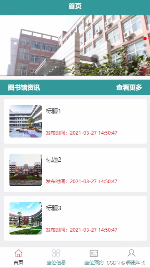 随着我国经济迅速发展,互联网对人们的生活及工作都带来了非常大的方便,各种管理系统都在不断的增加,但是图书馆自习室座位预约小程序查询方面缺乏系统的管理方式,为提高图书馆自习室座位预约小程序查询效率,特开发了本图书馆自习室座位预约小程序。
