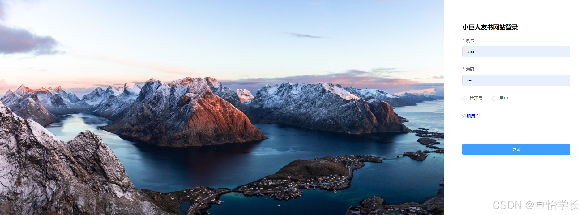 分为管理员和普通用户进行登录、也可以在这里进行用户注册。