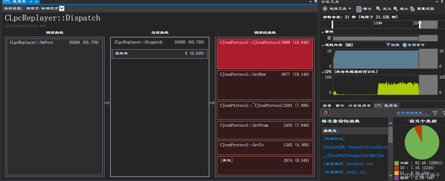 他能干啥呢,能帮你看看你的代码里每个函数,甚至每行代码占用了多少cpu,用了多少内存。就这个熊样。那叫一个强