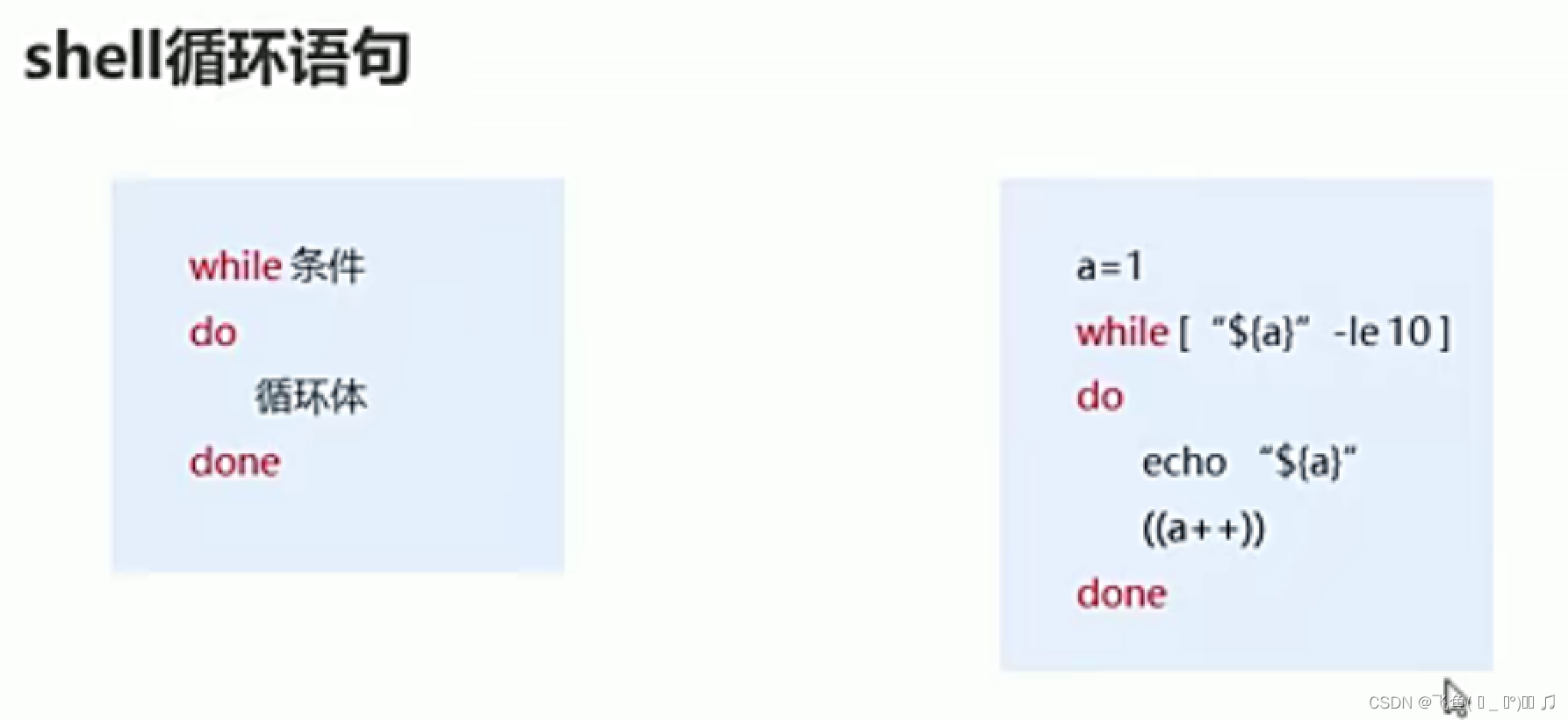 a=1 while [ "${a}" -le 10 ] do echo "${a}" ((a++)) done