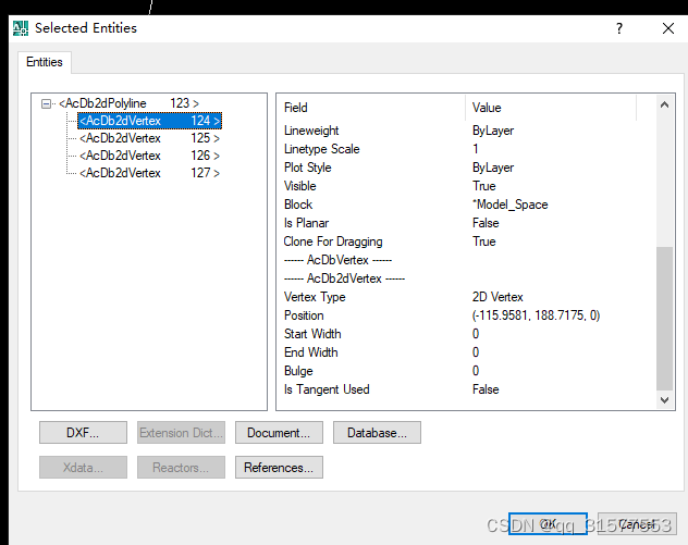 对应类Acdb2dPolyline,有起点,末点的宽度。由Acdb2dVertex(顶点组成)